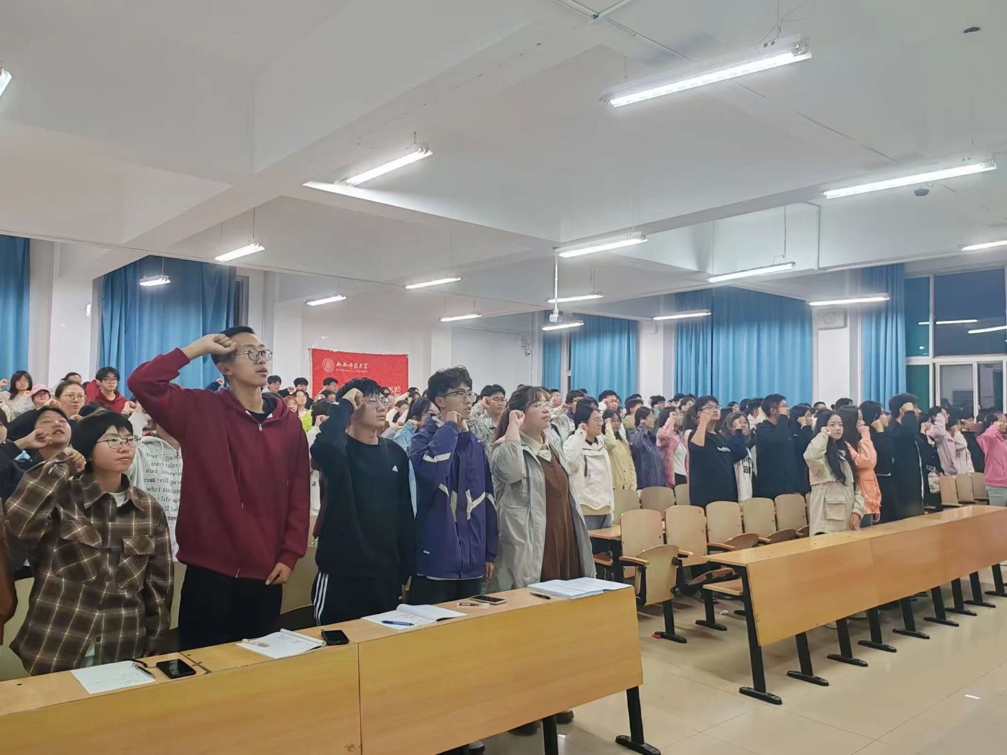 接下来,学习部负责人赵泽凯带领全体成员进行宣誓,明确团委员工会全心全意为师生服务的宗旨。最后,为促进团委员工会及社团成员工作的积极主动性,团委员工会全体成员签订《vsport官方网站团委员工会成员协议书》,社团社长团成员签订《vsport官方网站社团成员协议书》。