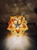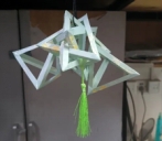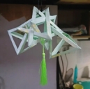 该作品是由五个空心的正四面体构成的花灯造型,运用数学几何知识将手工制作和装饰艺术相关联,体现了数学中的几何美。