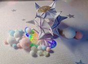 她的作品以“几何变换”为基础,通过将纸折成正方形等多边形形状,将它们加以组合得到几何图形,给人一种立体直观的感觉,体现出数学的对称美和立体美。