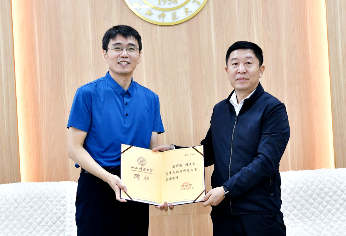 报告结束后,公司党委副书记王志强在行政北楼二层接待室亲切接见了周进鑫员工,并为其颁发了客座教授证书。
