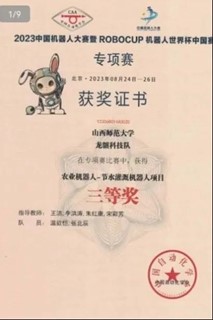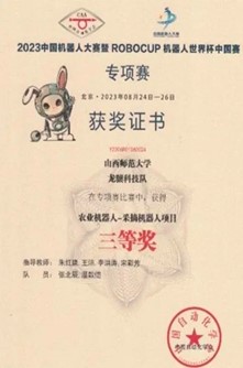 8月24日,由中国自动化学会主办,中国自动化学会机器人竞赛与培训部、中国自动化学会机器人竞赛工作委员会、北京工商大学承办的2023中国机器人大赛暨RoboCup机器人世界杯中国赛专项赛在北京工商大学良乡主校区开幕。公司龙骧科技队在“农业机器人-节水灌溉机器人项目”中荣获三等奖,龙骧科技队与布里茨两支队伍在“农业机器人-采摘机器人项目”中荣获三等奖与优秀奖。