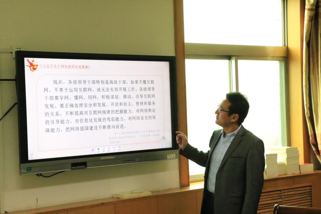 4月2日上午,数计公司党委中心组在科学会堂A705会议室召开会议,公司党委书记郝红霞、经理史建红、副书记杨亚东、副经理安立坚及各党支部书记参加会议。杨亚东带领与会人员学习了《习近平关于网络强国论述摘编》中的部分内容。