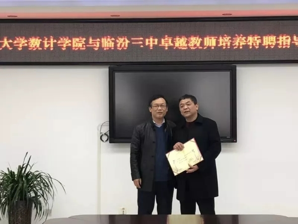 会上,史建红经理、朱红康副经理、刘生芝老师与临汾三中王纯林副董事长、李民生主任、徐建农老师、董李平老师进行了座谈,双方就协同培养模式、互助合作等方面达成一致意见,史建红经理向临汾三中两位特级教师颁发了聘书。