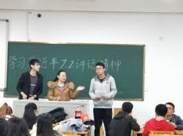 11月10日,1701团支部举办了一场形式新颖、独具特色的团日活动,带领团员学习习近平总书记讲话精神,取得了良好的学习效果。活动以趣味问答的形式进行,分为三轮比赛。第一二轮是以团小组为单位作答,第三轮是个人抢答战。活动要求团员在1分钟内记忆纸条上有关习近平总书记7.2讲话的语录,1分钟后背述纸条上的内容,支委成员根据团员表达内容的完整度、准确度和清晰度打分,最后统计得分、宣布排名并颁布奖品。团支书杨存伟作活动总结。他希望通过学习,支部团员能够志存高远,勇于奋斗,积极进取,成长为德智体美劳全面发展的社会主义建设者和接班人。