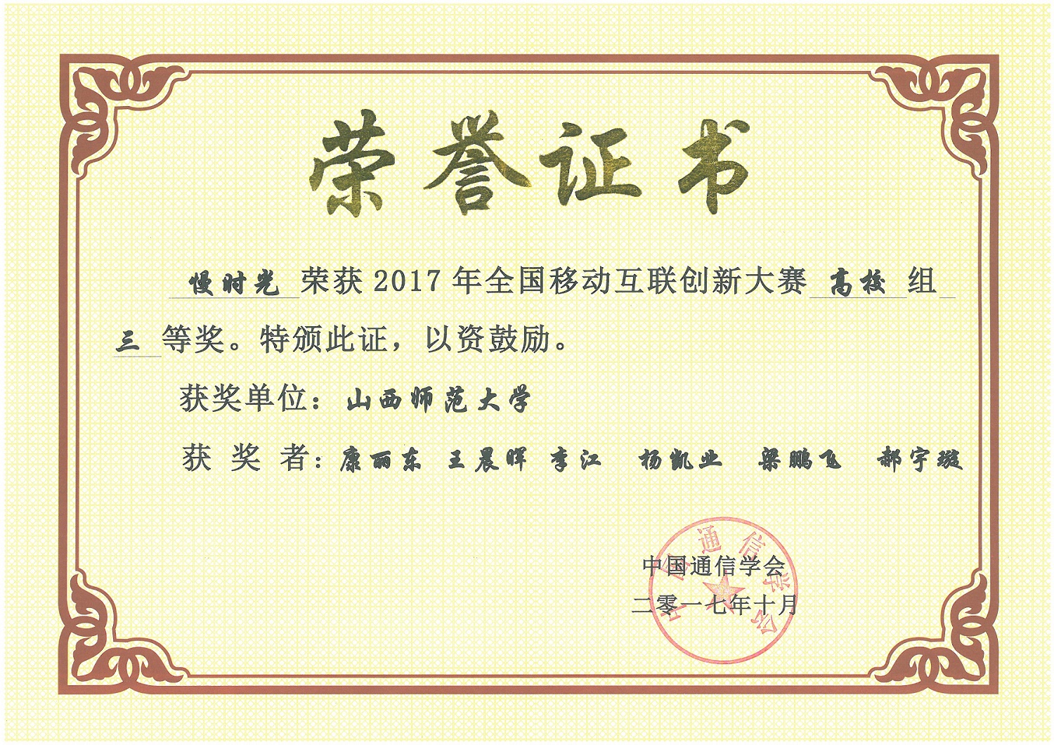 10月27日——29日,2017全国移动互联创新大赛在北京落下帷幕。vsport官方网站“慢时光”团队作为公司参赛的唯一团队,喜获高校组“三等奖”荣誉,这也是公司首次参加这一全国顶级赛事。