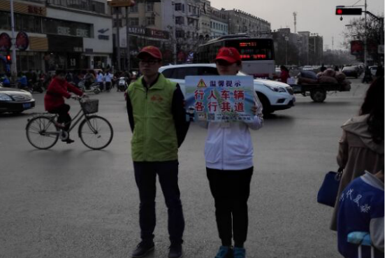 3月19日下午,公司青协及所有志愿者成员按照提前分好的小组在公益顺风车工作人员带领下,有序地站在安全地带高举起标有“行人车辆,各行其道”、“行人遵守交通信号灯”的标志牌,头戴红色公益帽,手挥舞着“文明劝导”的小黄旗,一动不动坚守自己的岗位,在红绿灯的指引下为市民出行提供保障并积极协助交警维护交通秩序。